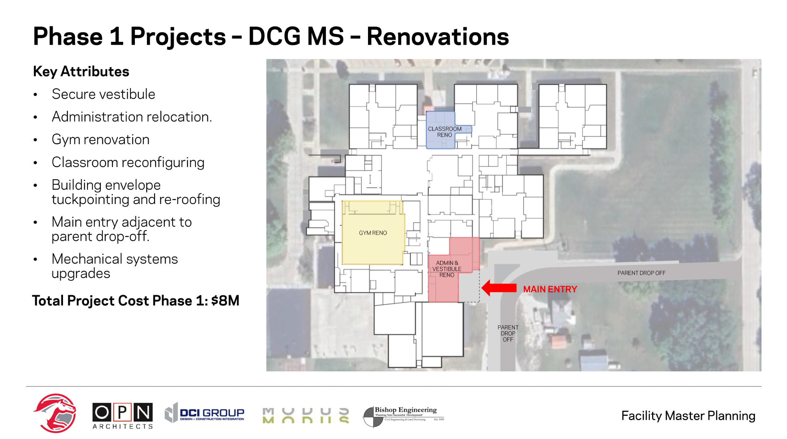 DCG CSD held a Bond Referendum Town Hall to answer stakeholder questions on Tuesday, October 28. Click the video tab below to hear from DCG Superintendent Dr. Scott Blum, DCG Associate Superintendent Dr. Greg Carenza, DCG Business Manager Michelle Wearmouth, DCG Activities Director Madison Melchert, Travis Donahue and Sean Shatava from the DCG Operations department and Ken Hagen and Kristin Lewis from OPN Architects.