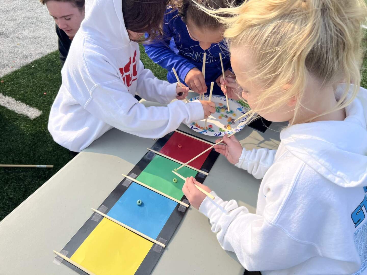 What a fun way to learn for third graders to learn about computer science! DCG High School’s Advanced Computer Science class spent time with third grade students from all four elementary buildings. They worked together to decipher codes that will showcase the directions of Minute to Win It games. As you can see below, the activities featured hands-on learning and a whole lot of teamwork! Thanks for sharing your knowledge high school students!