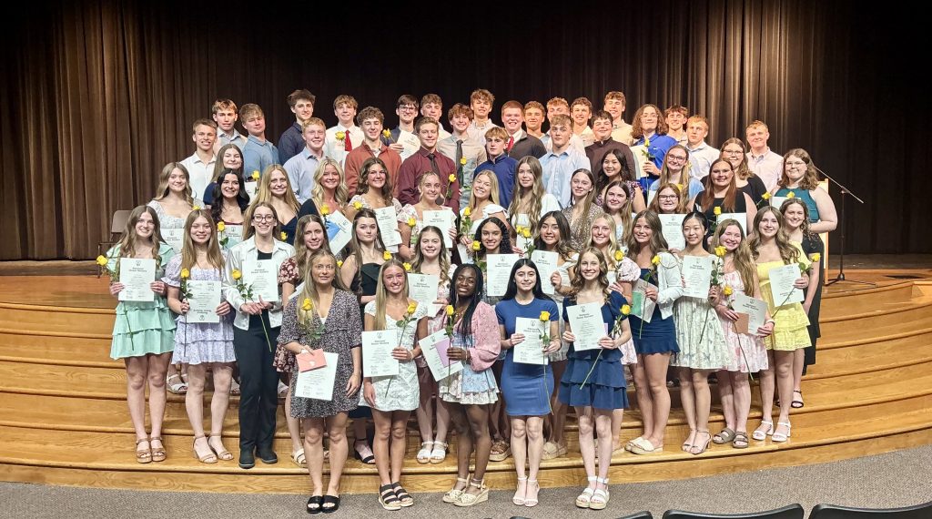 Dallas Center-Grimes High School National Honor Society inducted 61 new members at their annual ceremony on Wednesday, April 8. These new members commit to the four pillars of NHS: scholarship, service, leadership and character. The keynote speakers at the 2026 NHS Induction Ceremony were Deputy Alan Loutzenhiser (DCG SRO) and Lindsay Kasperbauer (DCG High School Instructional Coach).