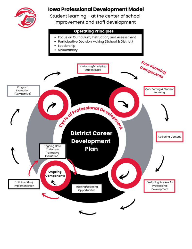 At Dallas Center-Grimes, we provide professional learning experiences for our educators. The district ensures that the professional development aligns with the requirements of Iowa Professional Development Model. Professional development is an integral part of school improvement and helps ensure every classroom contains a highly qualified teacher who will positively impact student learning and performance. Improved student learning is, and always will be, a primary focus at Dallas Center-Grimes Community School District. Targeted professional learning is provided throughout the year on designated professional development days and job-embedded professional development experiences are possible as a result of our district Teacher Leadership and Compensation (TLC) Program.